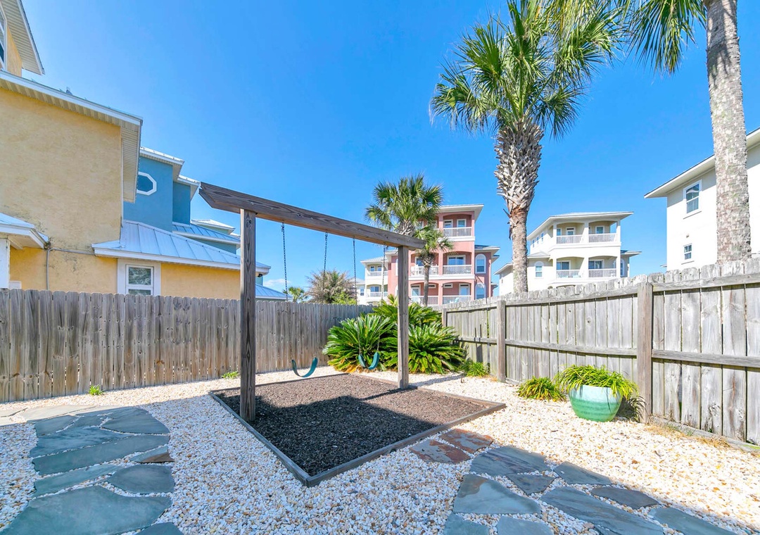 * Spacious Backyard with a Swing Set