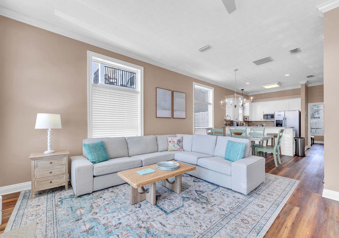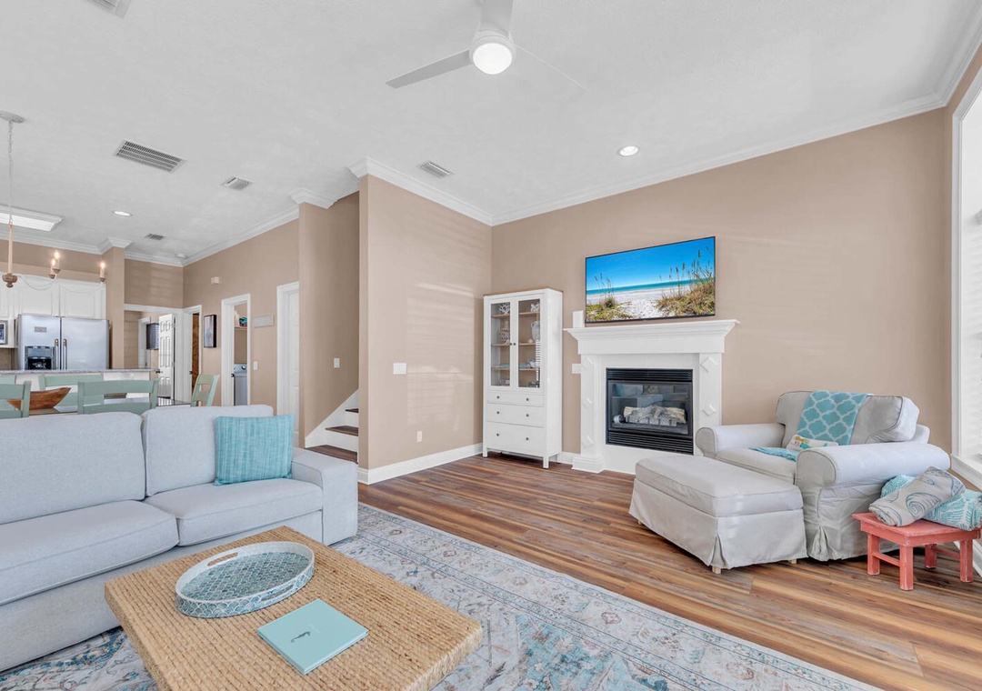 Welcome to Turquoise Tail, a delightful 3-bedroom, 4-bath beach cottage just steps from the 94 beach access, offering stunning Gulf views from both the second and third floors. As you enter through the front door, you'll be greeted by an open-concept living, dining, and kitchen area. Surrounded by oversized windows, natural light floods the space, creating a welcoming atmosphere perfect for gathering with loved ones. The kitchen is fully equipped, ready for you to prepare a delicious meal.