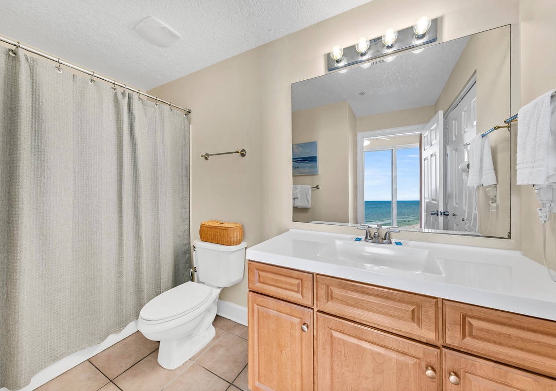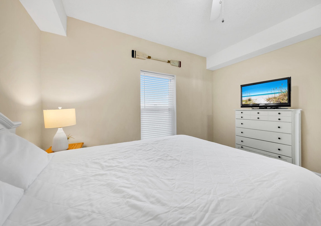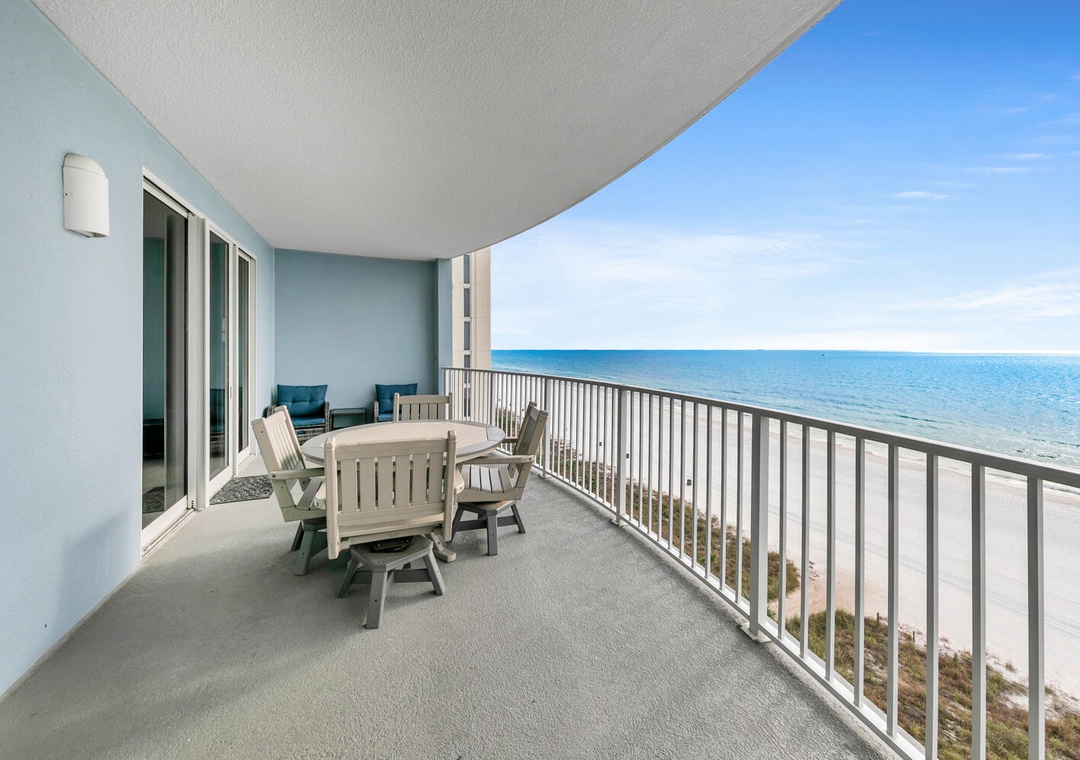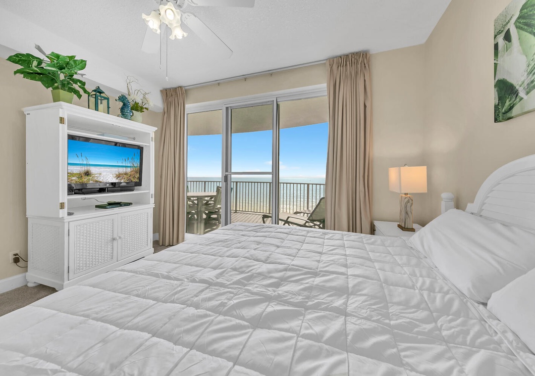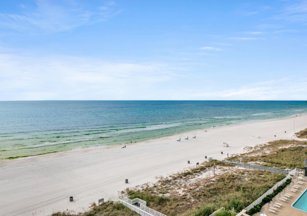 The view can be savored from all points of the common area. Walk out the sliding glass doors onto your private balcony and savor the view. Listen to the sounds of the Gulf and let all of your cares float away with the gentle breeze. The master bedroom suite contains a king bed, a full private bathroom and allows access to the balcony. Wake up to amazing view of the beach while curled up in your bed. The second bedroom contains a queen bed and comes with its own full bathroom. The living room features a queen sleeper sofa , providing additional sleeping accommodations for your family members.