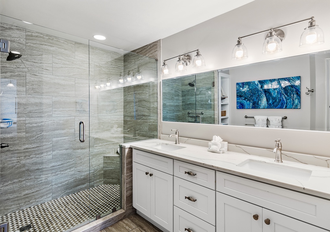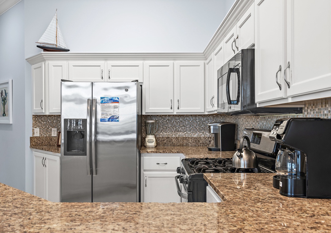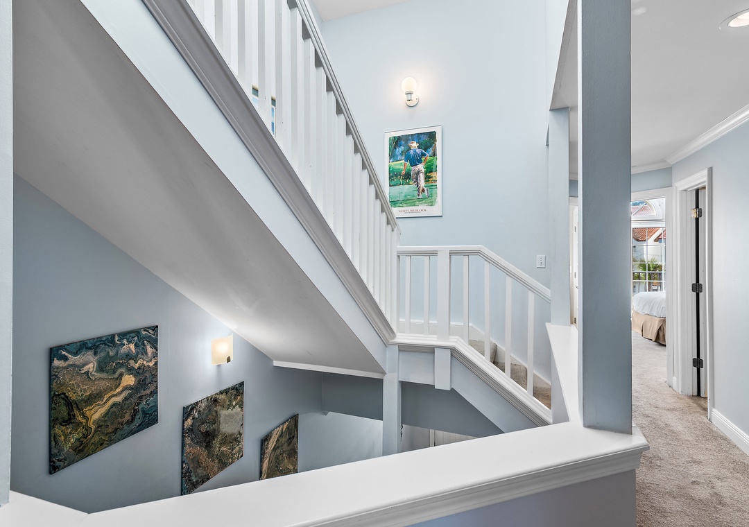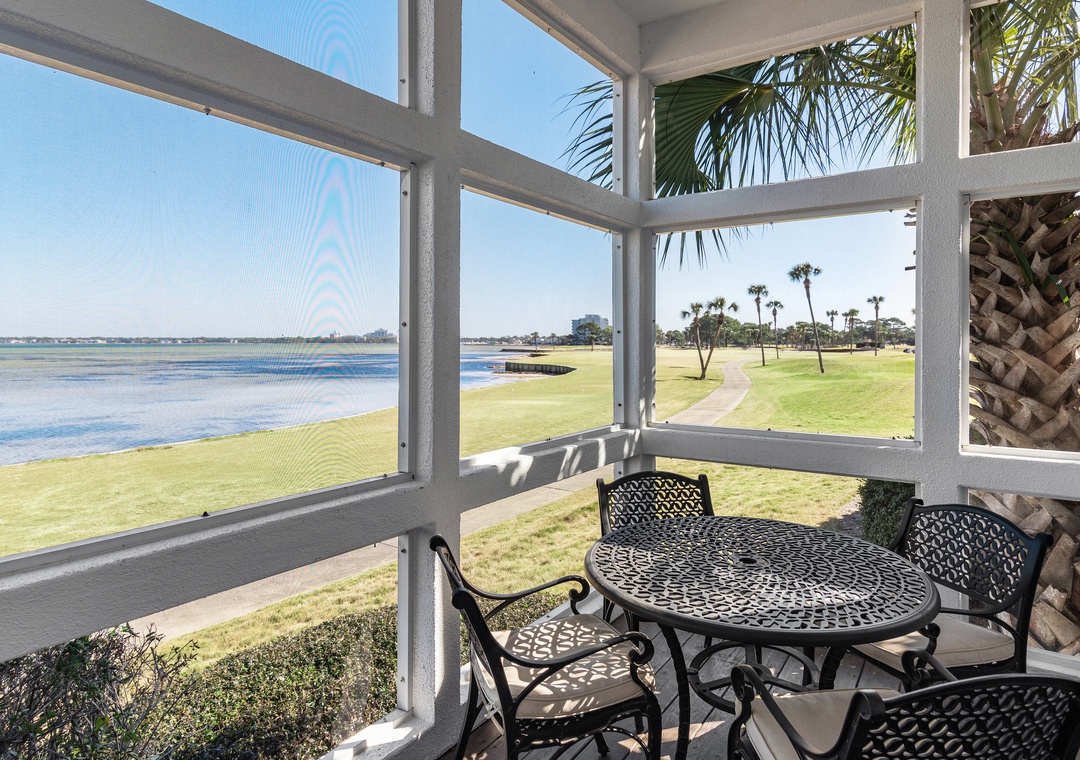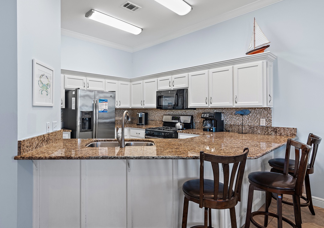 The first level offers a guest bedroom with a queen bed and an adjacent full bathroom with a tub/shower combination. Upstairs, the master suite boasts a king-size bed, a private balcony overlooking the bay, and an en-suite bathroom equipped with a double vanity and a walk-in shower. Also on this level is a queen guest bedroom with its own private balcony and full bathroom. Another guest bedroom includes a twin bed and French door access. The third floor boasts a spacious guest bedroom with two queen beds and a large picture window that fills the room with natural morning light. With two dedicated parking spaces and an unbeatable bayfront location, Vantage Pointe 43 is the perfect place to create unforgettable family memories that will last a lifetime.