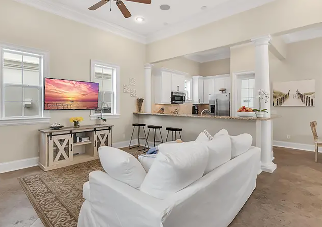 Welcome to Villa Palmeira — Your Dream Coastal Escape in Santa Rosa Beach, 30A, Florida. Nestled in the heart of the scenic 30A corridor, Villa Palmeira is located within the exclusive, gated community of Palmeira Villas, providing easy access to Seaside, Seagrove Beach, and other popular destinations along 30A. This stunning retreat is perfect for families, couples, or groups seeking an unforgettable beach getaway. Step into the chef’s kitchen, complete with a spacious island and seating ideal for everything from quick breakfasts to gourmet dinners. Enjoy your mornings with coffee on the back patio, soaking in the tranquil coastal surroundings. The home’s thoughtful layout includes King master suite on 2nd floor with ensuite bathroom and a guest bedroom with 4 twin beds (2 sets of bunk beds). The third Floor has 2 King master suites with ensuite bathrooms. Coming soon is an additional Queen bedroom.