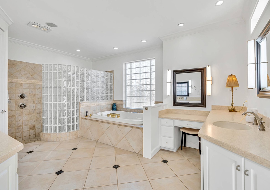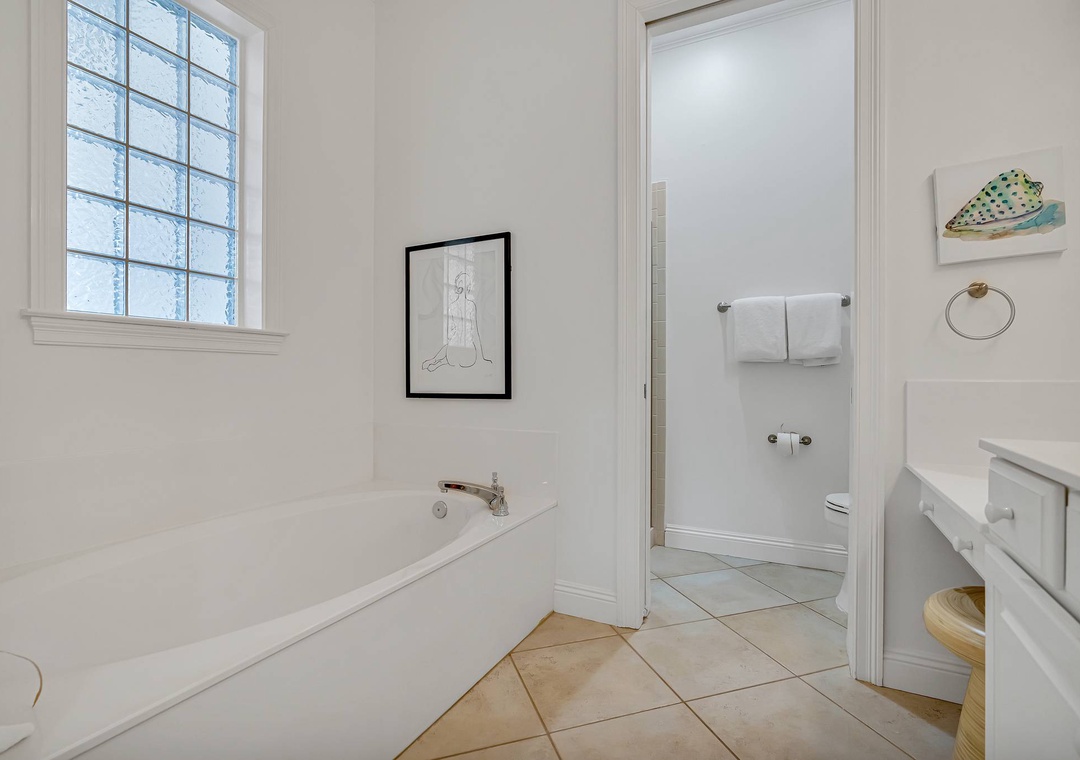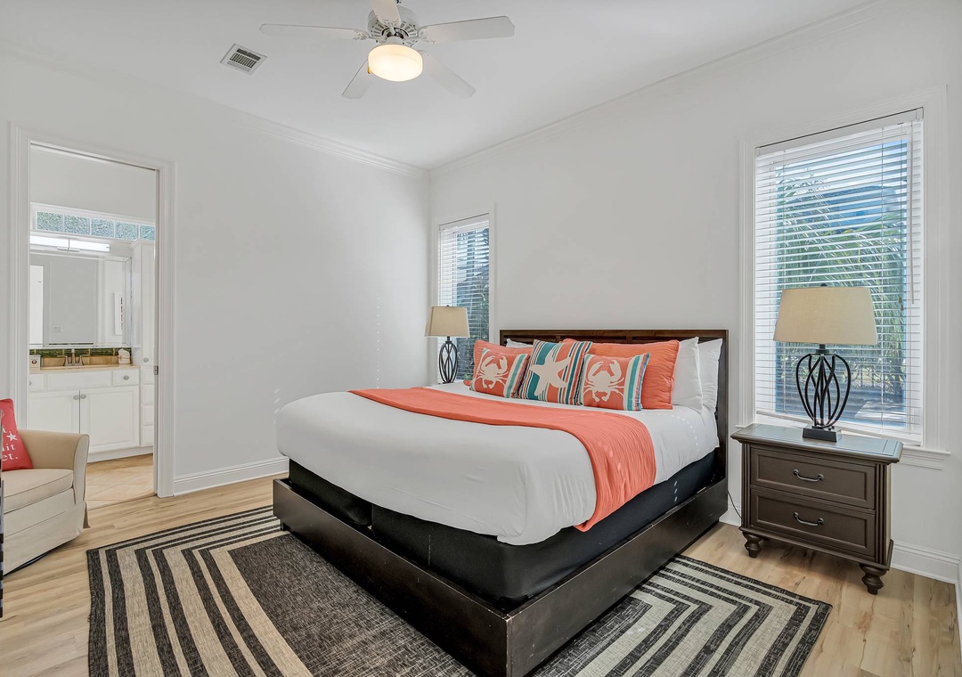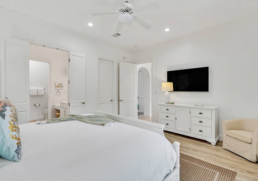 Master Bedroom: King bed with private en-suite bath