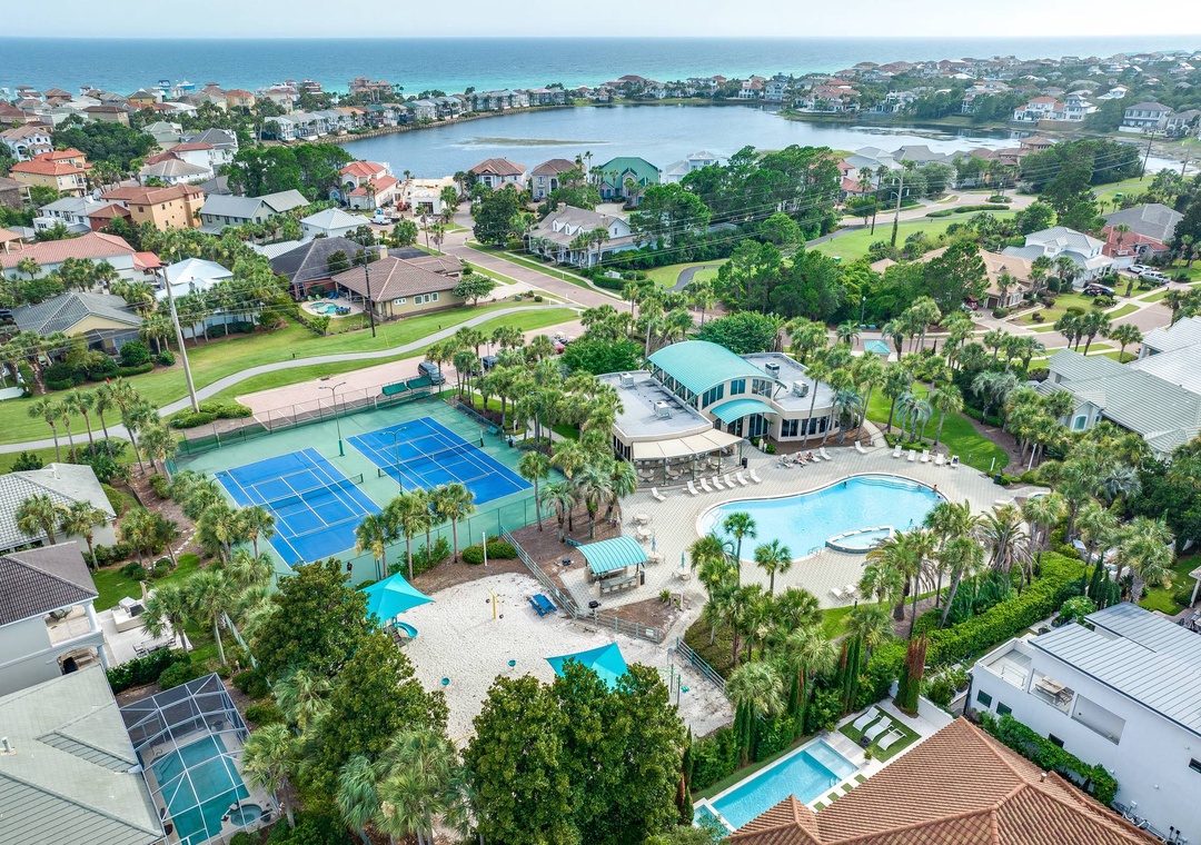 Gated, upscale Destiny East is a luxurious neighborhood with lush landscaping and an array of amenities. Club Destiny is where you'll find the huge seasonally heated community pool with a waterfall. There is also another pool on Scenic 98 on Four Prong Lake to stop by on the way to the beach. You can also enjoy a game of tennis or pickleball on the two tennis courts, soak in the hot tub, let the kids burn some energy on the playground, duke it out on the basketball court or relax for a show in the clubhouse theater. You can't beat this central Destin location! Walk to Tuscany Italian Bistro or head towards the beach for great seafood at the Crab Trap or Captain Dave's on the Gulf.