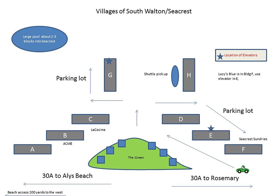 The Village is centrally located in Seacrest between Rosemary Beach and Alys on 30A. The convenient location is within easy walking distance to world-class dining, spa, wine bars, and many wonderful locally-owned shops, and only about a half-mile from the NEW 30Avenue center with lots of shopping and dining options! There is a fabulous Farmer's Market on the weekend where you can select fresh local fruits, produce, and honey. Nearby beachside communities such as Seagrove, Seaside, WaterColor, and Santa Rosa Beach are just minutes away. The Village is also conveniently located 20 minutes from Panama City Beach.