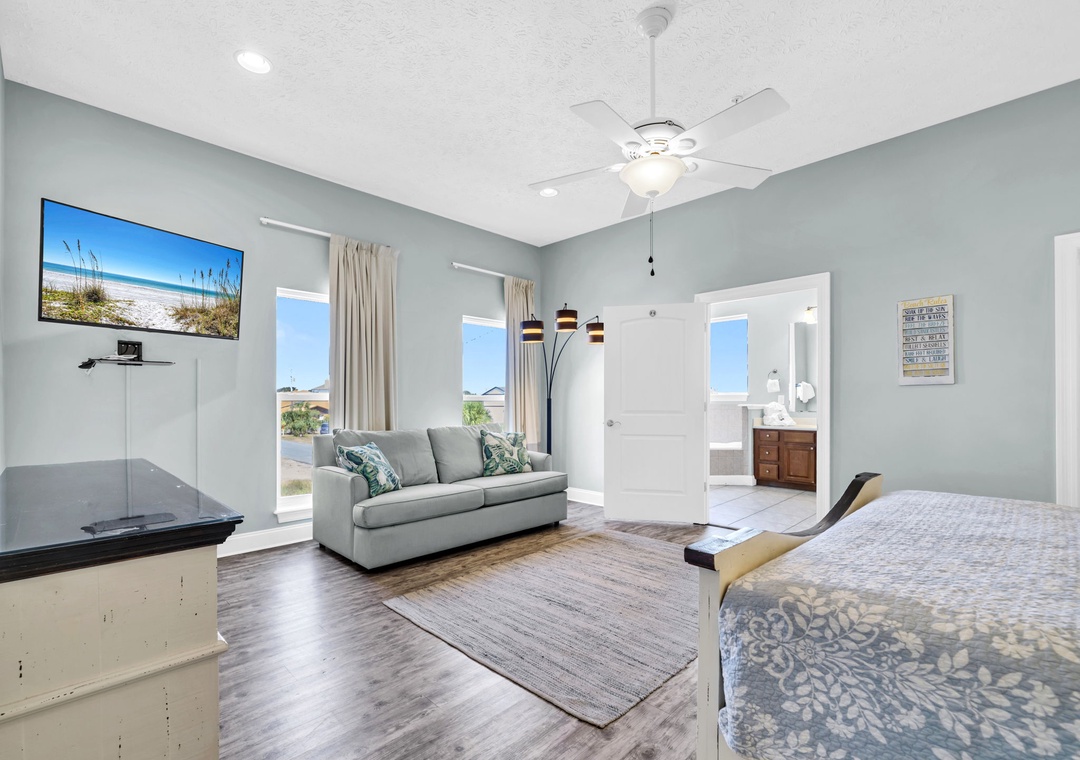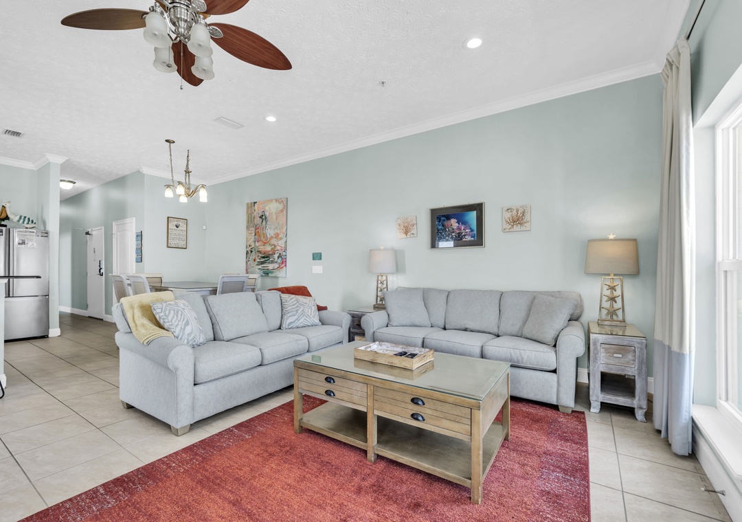 Escape to tranquility at Rest-A-While 201, a beautifully appointed 3-bedroom condo offering breathtaking Gulf views from its expansive balcony. Upon entering, you'll be welcomed by stylish décor and an open, airy floor plan. The living room features a large flat-screen TV and ample seating, providing the ideal spot to relax after a day at the beach. The chef in your group will appreciate the fully equipped kitchen with stainless steel appliances and a convenient breakfast bar. The master suite, with a king-sized bed, a sleeper sofa, and an ensuite bathroom featuring a jetted spa tub and walk-in shower, offers a true retreat. With accommodations for up to 10 guests, including king and queen guest bedrooms, as well as a sleeper sofa in the living room, there's plenty of room for everyone. Additional amenities include a washer/dryer and parking for up to 4 cars (2 in the garage). Whether you choose to relax on the spacious balcony or take a short stroll to the beach, Rest-A-While 201 promises the perfect blend of comfort and relaxation for your getaway!