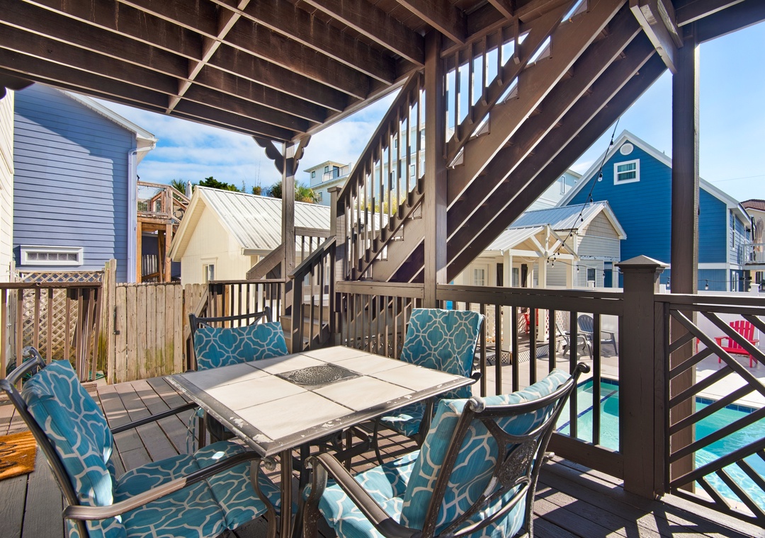 Walking on Sunshine is truly a unique find, in the fabulous Frangista Beach neighborhood, just 500 yards from gated beach access! Having a total of 6 bedrooms and 4 baths, this home features a sparkling fenced-in private pool and sleeping accommodations for 22 guests including a private carriage house complete with its own kitchen and living space! Inside the main home, there are two separate, spacious floor plans on both the first and second levels, each with a large living area and a fully equipped kitchen. The first level has a guest bedroom with two queen beds, another guest bedroom with a queen bed, and a full bathroom. The entrance to the upper levels is accessible from the first-floor balcony. The second floor has 2 guest bedrooms, one with a queen bed and the other with two twin-over-full bunks, plus a full bathroom. The king master suite is on the third floor and boasts balcony access, a large ensuite bathroom, and a queen sleeper. As an added bonus, there is a carriage house located behind the main house with a queen bed and queen sofa sleeper. Outside, there is more to enjoy, including a fenced-in yard for your pet and a propane grill to enjoy cooking outdoors year round.