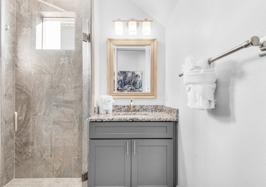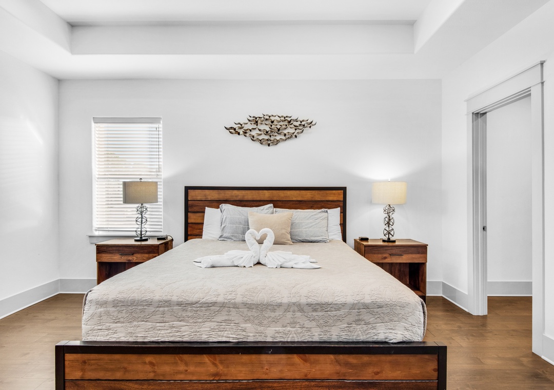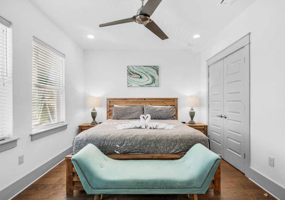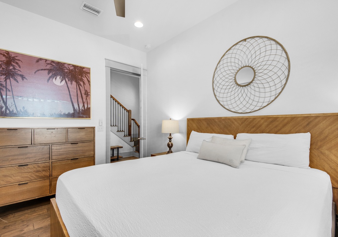 Guest Bedroom 1: King Bed with Bathroom Across the Hallway