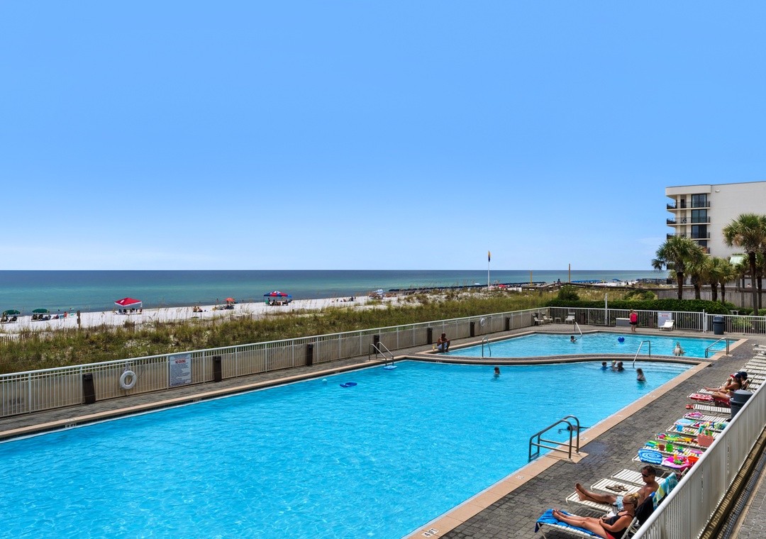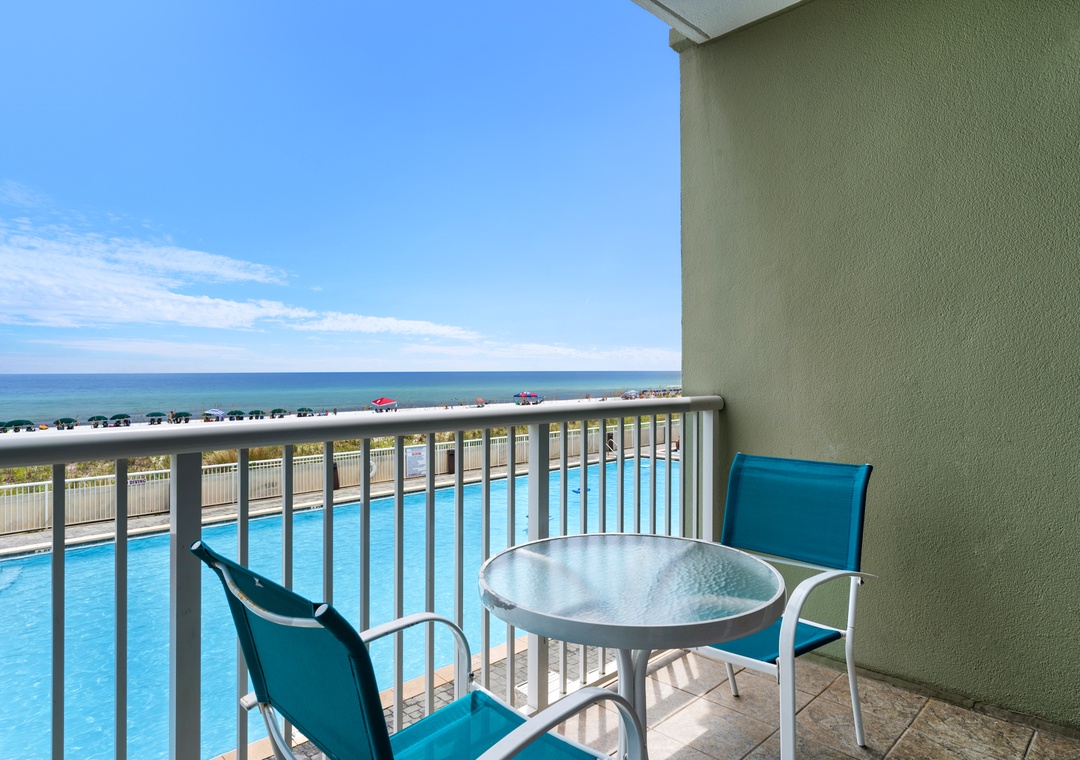 * Gulf Front Balcony with Views of Gulf + Two Pools