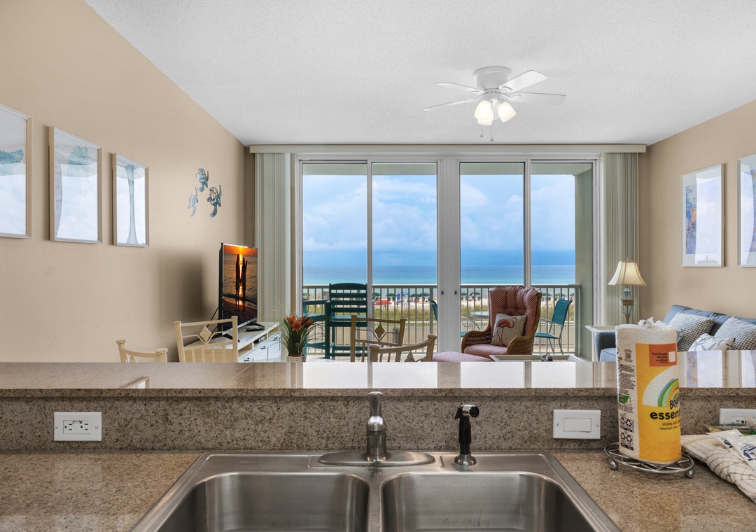 We had a great time at this location. It was not as spacious as I had anticipated. Two of our five people weren't able to make it which made it work out well so we had enough space for the 3 of us. The unit was clean, had everything you needed (except baking and pizza sheets, but no unit ever has those). It was the best location to the beach and the balcony location is ideal. The location to area restaurants (Stewby's) was walkable and an uber to the mall in Destin was short and cost effective. We will definitely be back to this unit. RealJoy was great to work with. The air went out at one point and they fixed it that day while we were at the beach.- Reviewed On: 6/27/2025