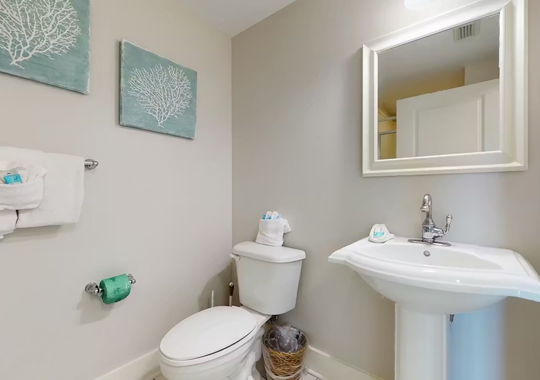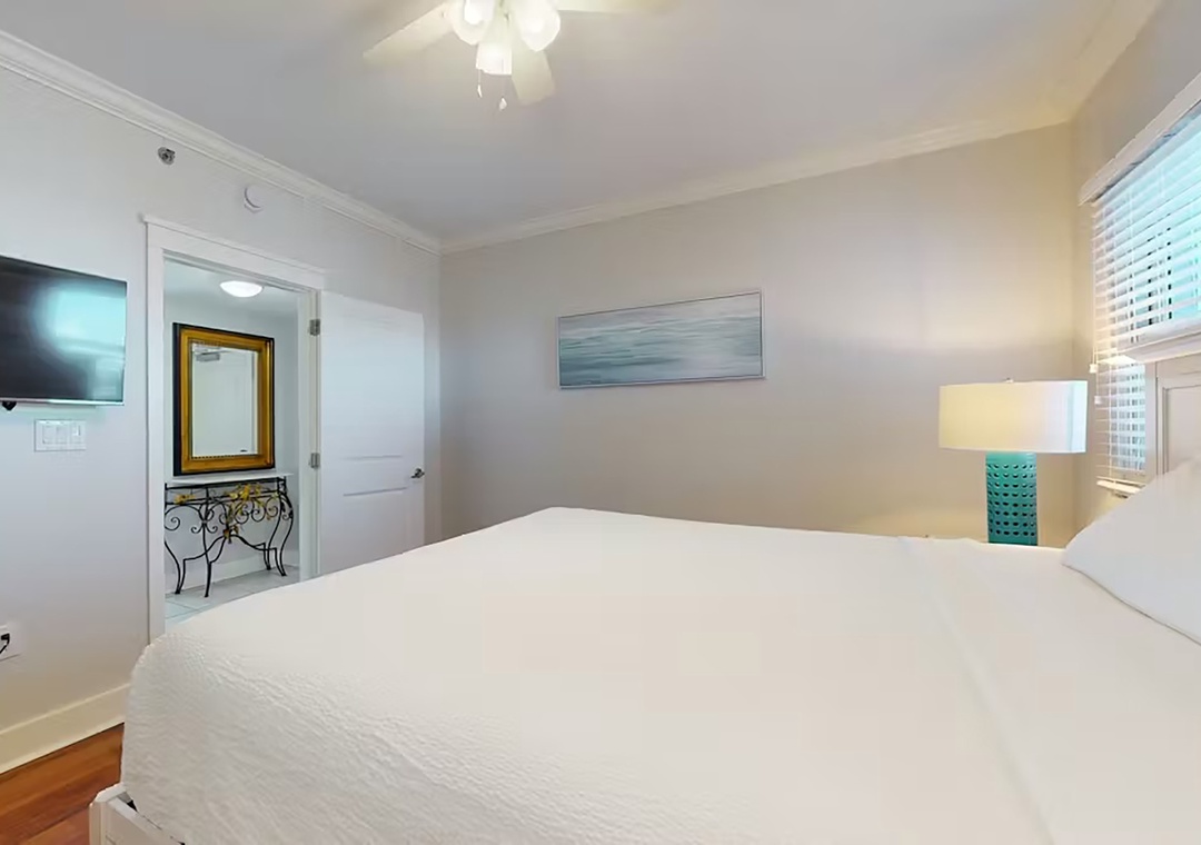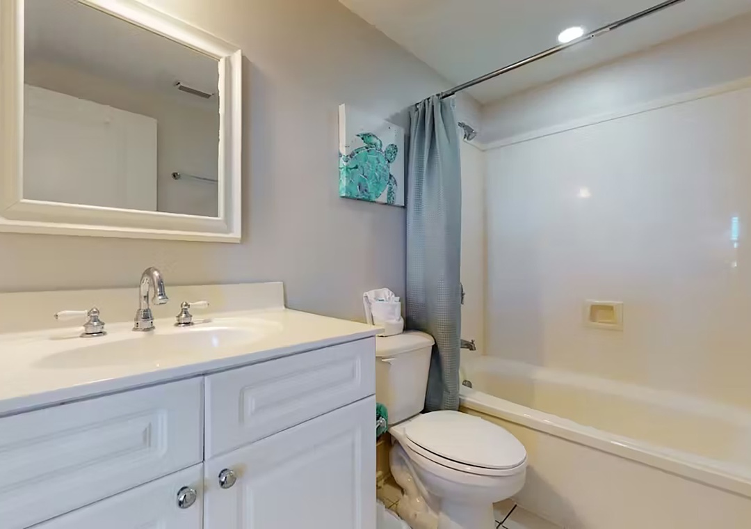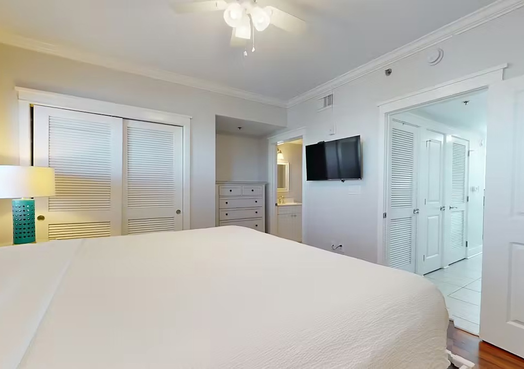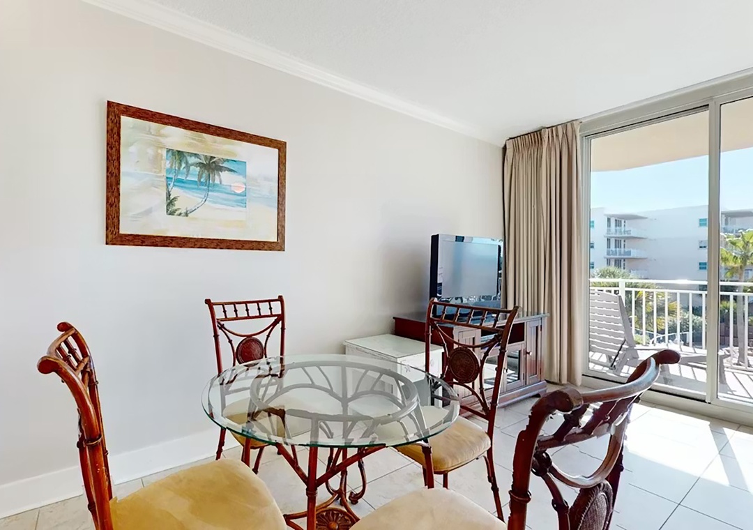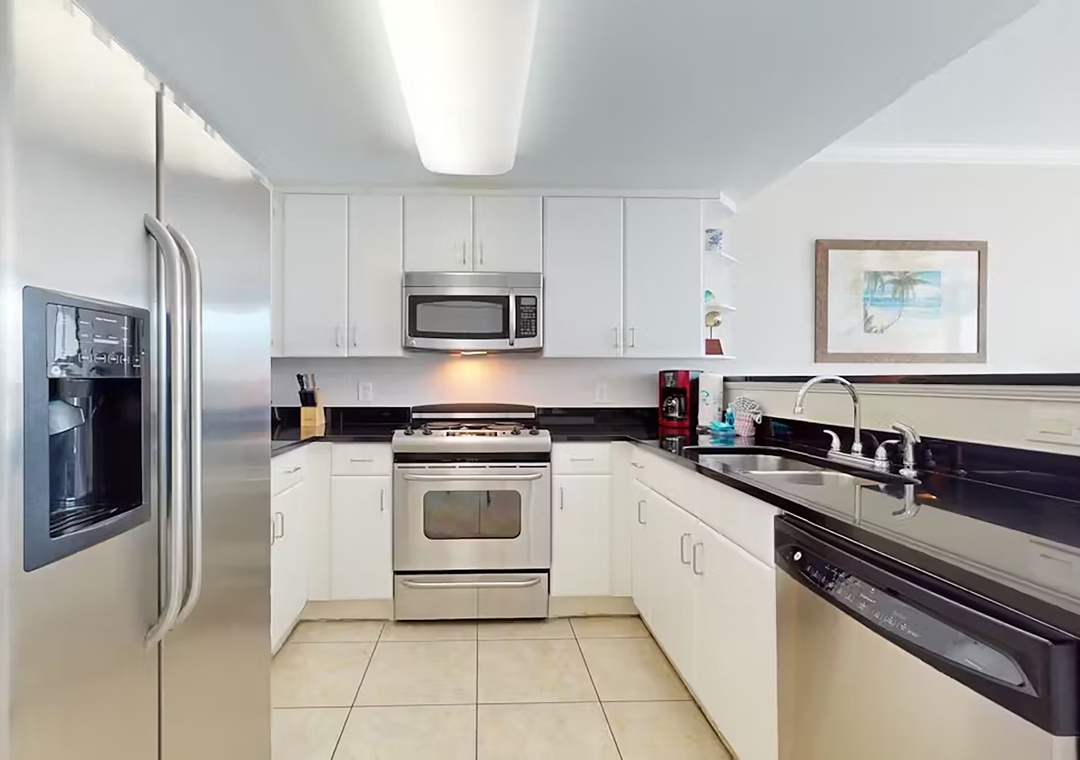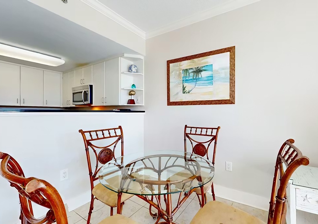 Unwind in the king suite, featuring a private ensuite bathroom and a flat-screen TV. The unit also includes a twin-over-twin bunk bed and a queen sleeper sofa in the living room, offering flexible sleeping arrangements for everyone. Prepare delicious meals in the fully equipped kitchen, then gather around the dining table to plan your daily adventures. After a fun day in the sun, relax in the cozy living room or step out onto the balcony to enjoy a beverage with a pool view. For added convenience, the condo includes an in-unit washer and dryer. With comfort, convenience, and resort-style amenities, Waterscape 424B is sure to become a family favorite youâll want to return to year after year.