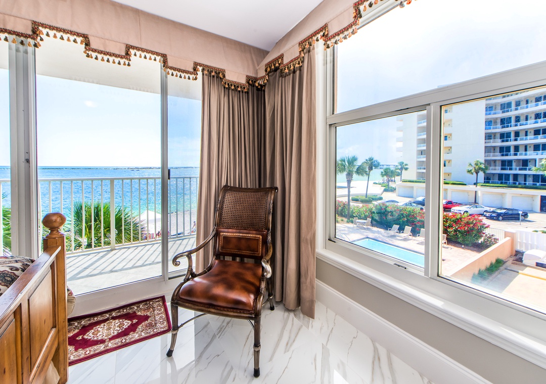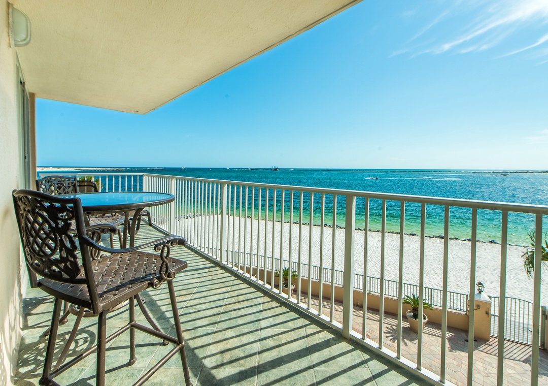 This beautiful 2BR, 2.5BA condo is situated directly on the water at the end of Holiday Isle, between the Destin Harbor and East Pass. Waterview Towers 202 features waterfront views in both bedrooms, with a king in the master and two queens in the guest room, sleeping 6 comfortably. This immaculate condo is equipped with a designer open kitchen, stunning marble floors and marble counter tops, custom cabinetry, stainless steel appliances and a breakfast bar. The huge master bedroom has a sliding door leading to the balcony and a master bath with custom tile shower, double vanity, and make up area. Relax comfortably on a 40ft balcony, long enough to be accessed from both bedrooms and the living room! With panoramic views of the Destin Harbor, East Pass, and the Jetties, Waterview Towers 202 will be the perfect beach experience for you!