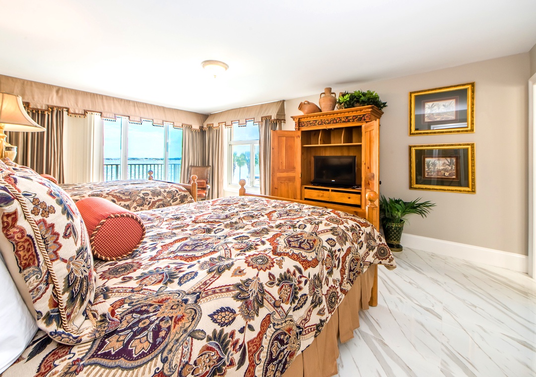 This was my first stay with vrbo and reeljoy property. The location was great. Tons of boat pass by window in bay. Fireworks display was right across bay on island. We were super close. Could not ask for more. Can't walk in water from beach at hotel but it is a short walk to put your toes in the water. I'm 44 300lbs and had no problem with the walk- Reviewed On: 9/10/2020