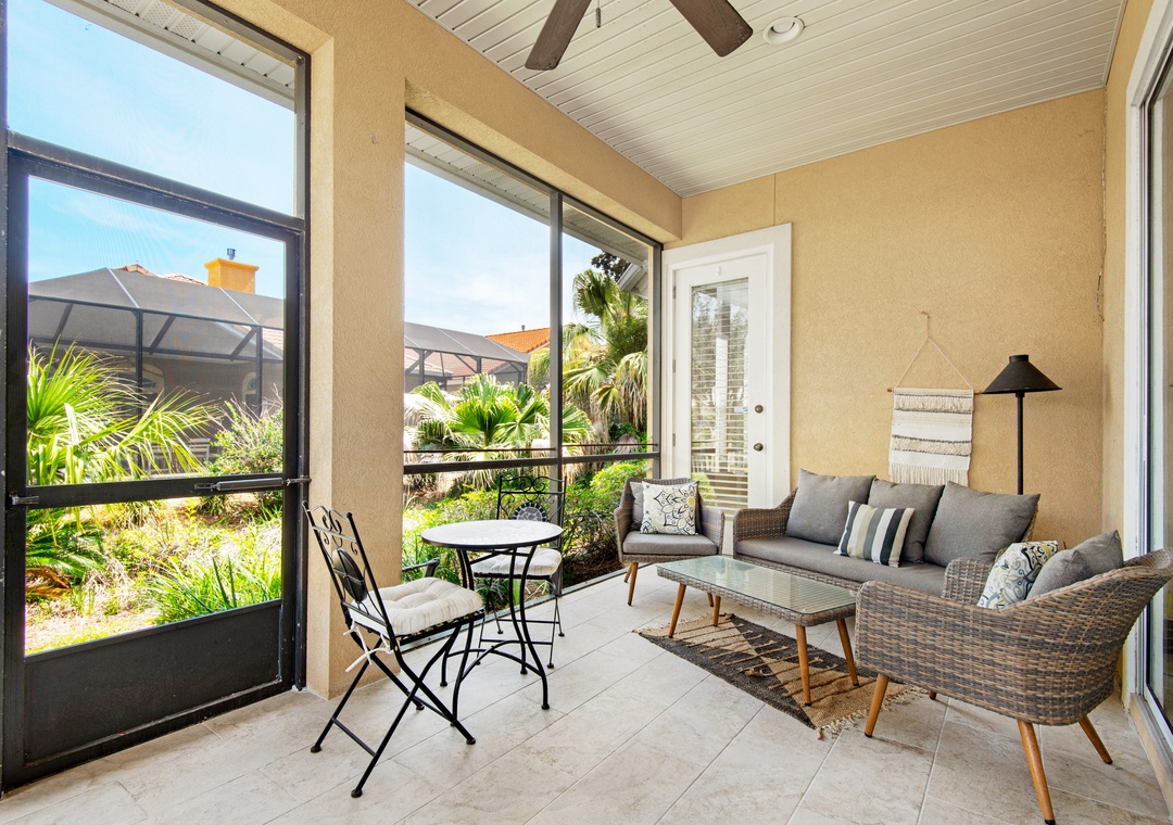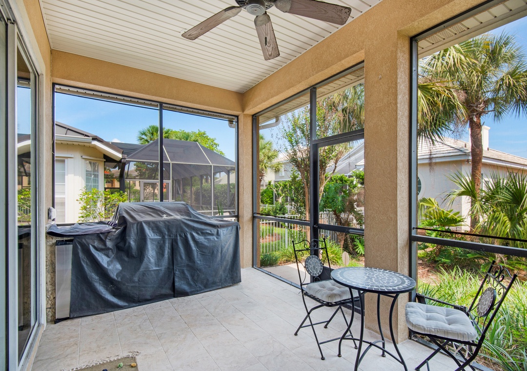 * Screen porch with a built-in grill and mini fridge