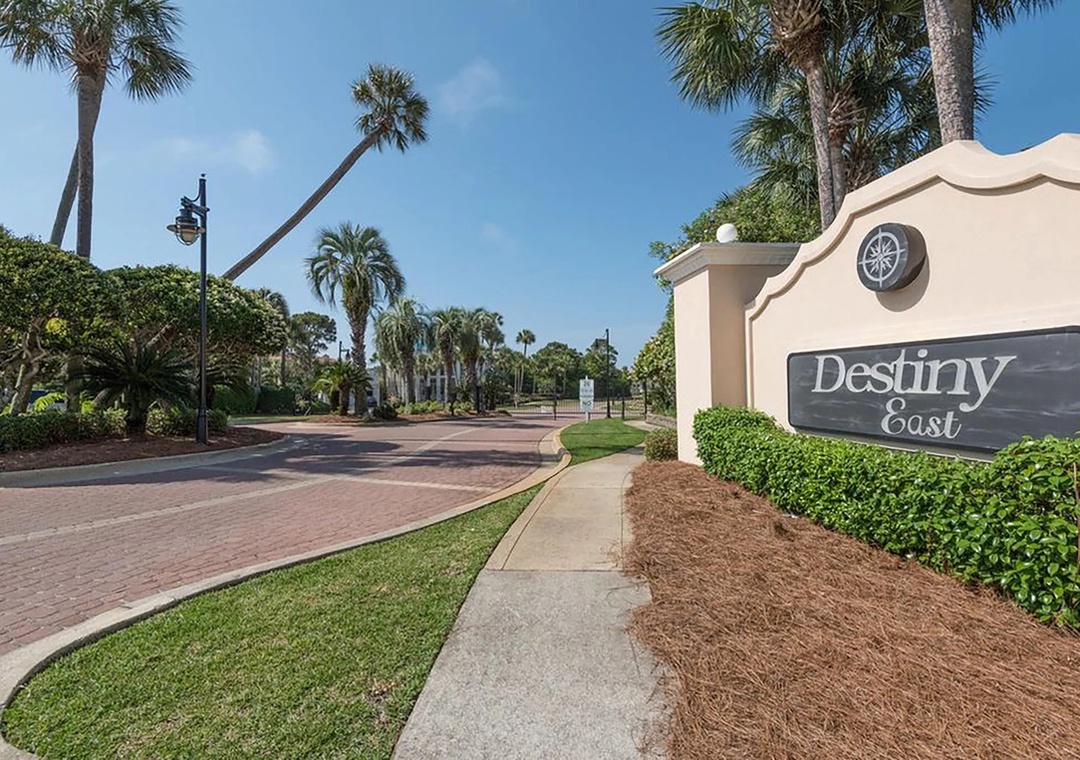 Gated, upscale Destiny East is a luxurious neighborhood with lush landscaping and an array of amenities. Club Destiny is where you'll find the huge seasonally heated community pool with a waterfall. There is also another pool on Scenic 98 on Four Prong Lake to stop by on the way to the beach. You can also enjoy a game of tennis or pickleball on the two tennis courts, soak in the hot tub, let the kids burn some energy on the playground, duke it out on the basketball court or relax for a show in the clubhouse theater. You can't beat this central Destin location! Walk to Tuscany Italian Bistro or head towards the beach for great seafood at the Crab Trap or Captain Dave's on the Gulf.