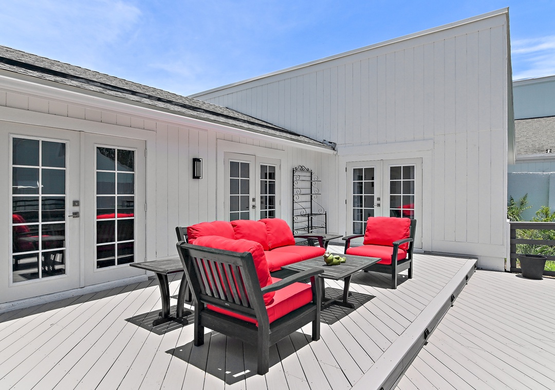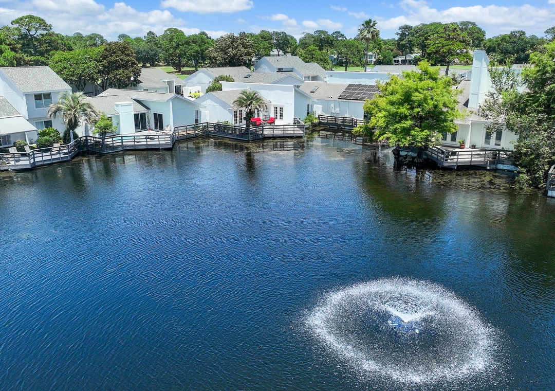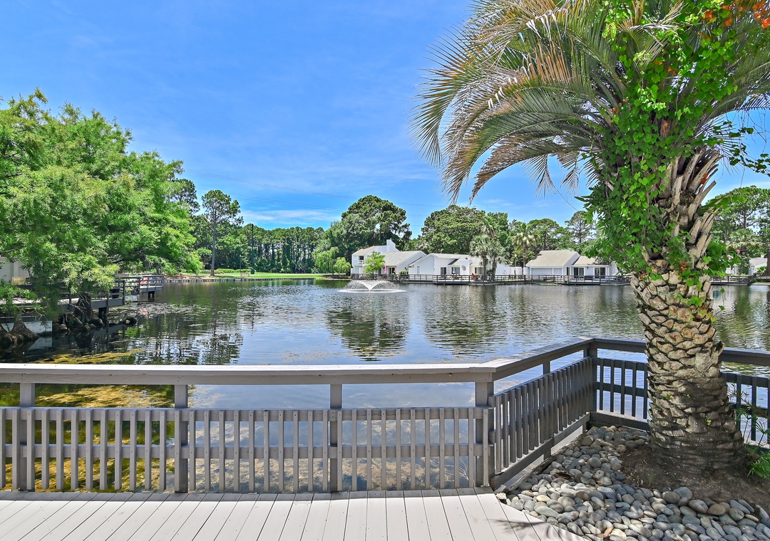 Welcome to WhimSea Retreat—a charming bayside villa nestled in the family-friendly Linkside community. This delightfully colorful getaway features 2 bedrooms and 1.5 baths, comfortably accommodating up to 4 guests. Unwind in the cozy den that opens to a front patio, perfect for morning coffee or an evening glass of wine. Out back, the spacious deck sits right over the water, offering a serene setting to relax, read, or feed the ducks at sunset—an entertainer’s dream.