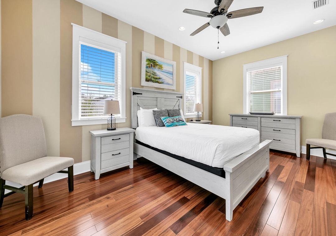 Whispering Palms is a recently updated 3BR, 2.5BA beach house located just off the quiet west end of Scenic Highway 30A in Gulfview Heights, between Blue Mountain Beach and Gulf Place. You’ll be only steps from the sparkling community pool and about 880 yards to the beach access! This home boasts hardwood floors throughout, modern designs, 10ft ceilings, and a fully equipped kitchen with granite counters and stainless-steel appliances. The first floor's open living area feature the living room with sleeper sofa, dining, kitchen, half bath and washer/dryer. Upstairs, the 3 bedrooms include a gorgeous Queen master with en suite bath (includes a jetted tub) and balcony overlooking the community pool, a bedroom with a full bed, and a bunk room with 2 bunk beds, sleeping a total of 11 guests comfortably! Splash around in the community pool, take a stroll to the beach, or check out Gulf Place Town Center under a mile away. Make Whispering Palms your next beach vacation tradition!