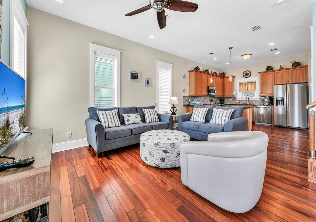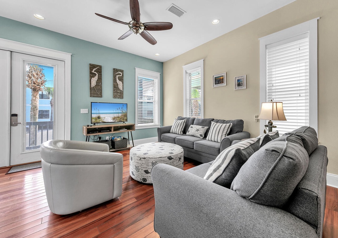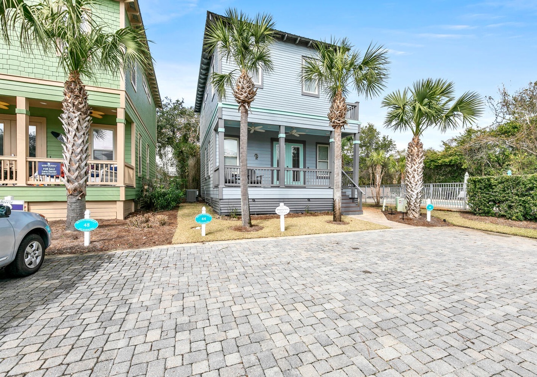 Whispering Palms is perfectly situated, with Grayton Beach, Seaside, Seacrest and Rosemary Beach just minutes away to the East. Located in an upscale area of Hwy 30A, this pristine house is perched in between Destin and Seaside. Just a 13-minute drive to Grand Boulevard Town Center with over 35 shops and restaurant as well as the all-new state-of-the-art Boulevard 10 Movie Theater. Bike down to Blue Mountain Creamery for a cone or meander along the miles of trails!