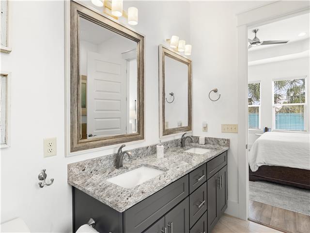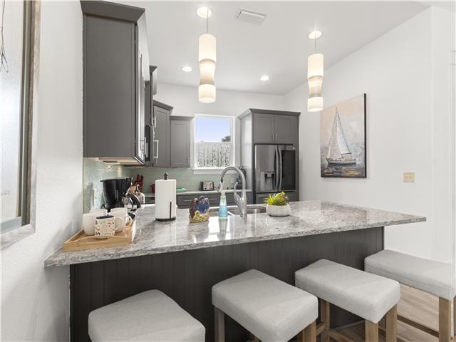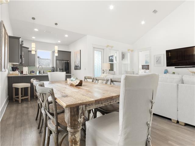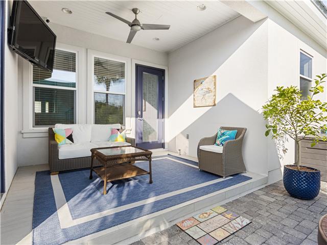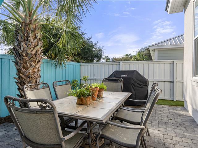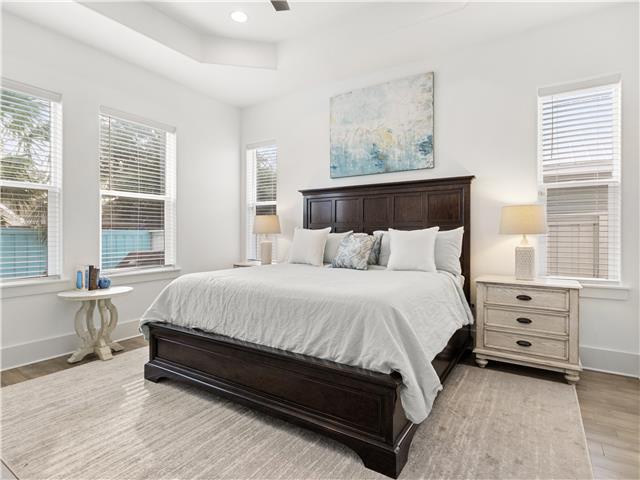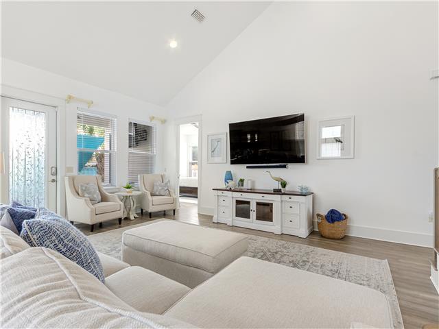 Welcome to Whispering Pines, a beautifully maintained 4-bedroom, 3.5-bath coastal home located in the gated Frangista Beach community. Sleeping up to 12 guests and including a 6-seater golf cart, this home is perfect for families and group getaways. Inside, you’ll find a bright, open living space with vaulted ceilings, engineered wood floors, and a fully equipped kitchen featuring black stainless steel appliances. The downstairs master suite offers a tray ceiling and walk-in closet, while the spacious upstairs suite includes its own ensuite bath and private front patio. Step outside to the expansive paved back porch complete with a 52” Smart TV, propane firepit, privacy-fenced yard, and palm-lined landscaping — ideal for relaxing after a beach day. Located just minutes from Gulf-front dining, Silver Sands Outlets, Seascape golf, Baytowne Wharf, and Grand Boulevard, this home offers the perfect blend of comfort, convenience, and coastal charm. Guests also enjoy access to the community pool.