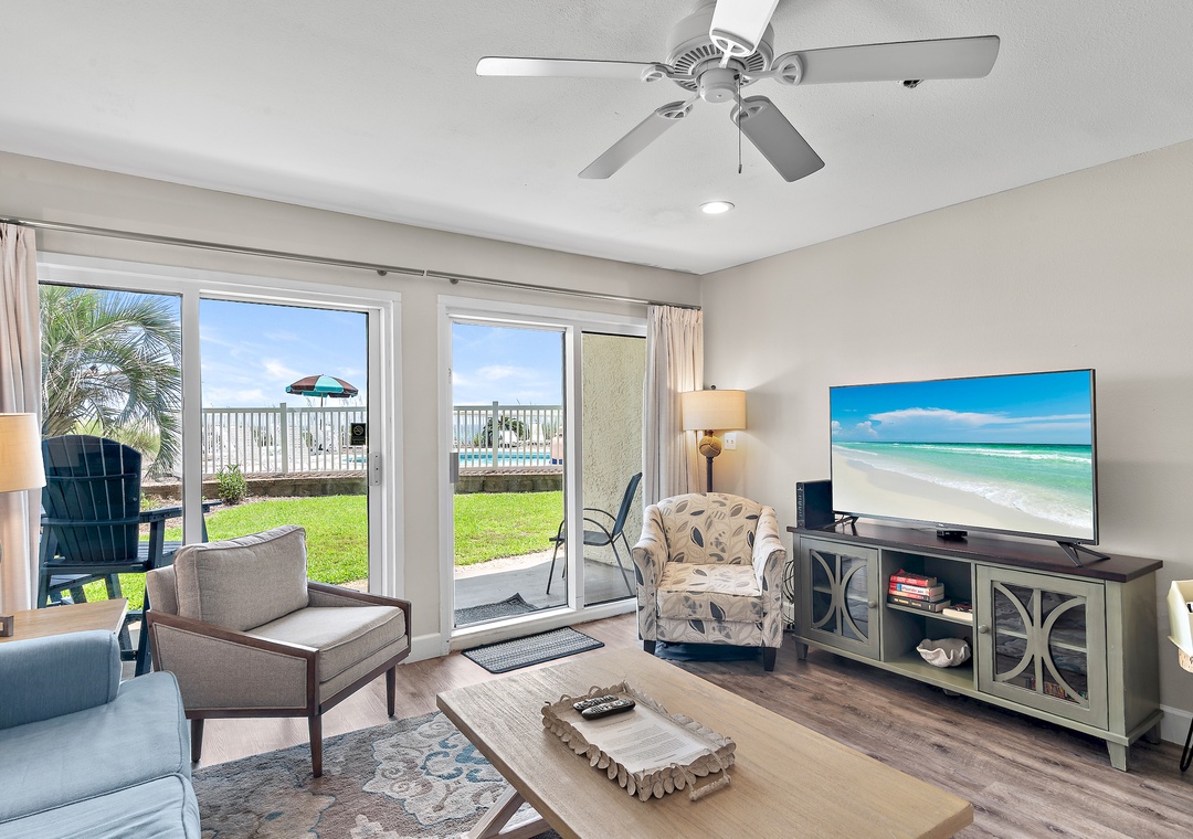 My wife and I decided to take a last-minute trip to the Destin area. We were looking for a walk out beachfront property and this one was a great fit! With the included chair and umbrella service we were able to get out every morning with a guaranteed spot (day 1 get there at 8am and the chairs will be reserved for you the rest of your stay). That made it very convenient and we didn’t have to rush down there every morning to reserve a spot. This condo was also steps from the pool. That was also very convenient. However, if you were wanting a direct ocean view the pool blocks that some. it was also an enough convenient location with the Winn-Dixie 1/2 mile away other shops and restaurants very close by.- Reviewed On: 7/10/2024