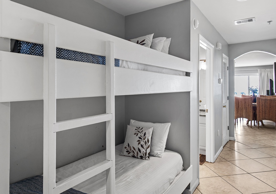 Loved it! Will be back! I am a very picky beach vacationer. I had expectations low on a smaller, possibly older unit but was pleasantly surprised! We LOVED having a ground floor unit less than 15 steps to the boardwalk. My mom ended up sleeping in the bottom bunk and said it was really comfortable and she’s almost 6’ tall! We loved the location of the condo (super close to chick-fil-a, Starbucks, Winn Dixie, etc) and these waters can’t be beat. (We had clear skies and clear, calm waters!) the view from the condo is great. You can see ocean and sand great. The chairs being included was another reason I booked here! Chair attendants were really nice. The Jack and Jill bathrooms were nice for privacy. It was overall very quiet! We came end of Sept so didn’t pay peak prices or deal with peak crowds! But didn’t hear a ton of noise from the ones who were there. Ground floor units all trusted leaving their stuff outside too and no one messed with it. Can’t wait to come back.- Reviewed On: 9/26/2022