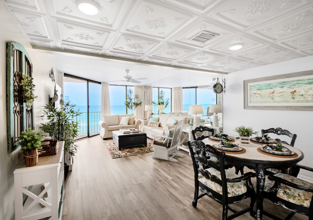 Clean and bright, very welcoming and beachy! Has a new feel and amazing views through the giant windows! We love the location on the quiet end with fast access to elevators and beach. Balcony overlooks the beach and not the pool which we prefer. Condo has everything we needed and the bed and couches are comfortable. Very well kept, and clean. Management was pleasant and so are the owners. We love Edgewater and PCB and recommend Salty Kisses to anyone looking for a great, peaceful rental!- Reviewed On: 4/21/2023