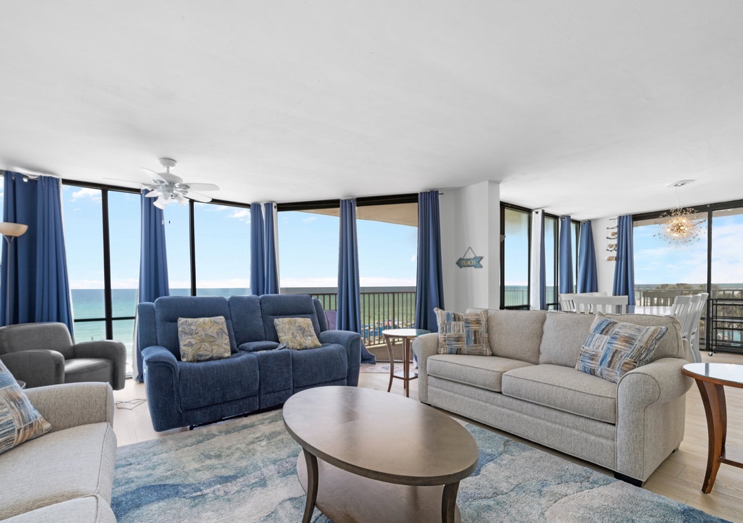 This place was wonderful for our family of 8! The views from the balcony were amazing and perfect, particularly at sunset. We found everything we needed in the unit, it was on the end of the building, so little foot traffic, and it allowed us all to have our own space while chilling at the beach. There were some items on the balcony that the weather has worn down, but we were able to manage just fine with what was there. Can't wait till next time!- Reviewed On: 7/16/2023