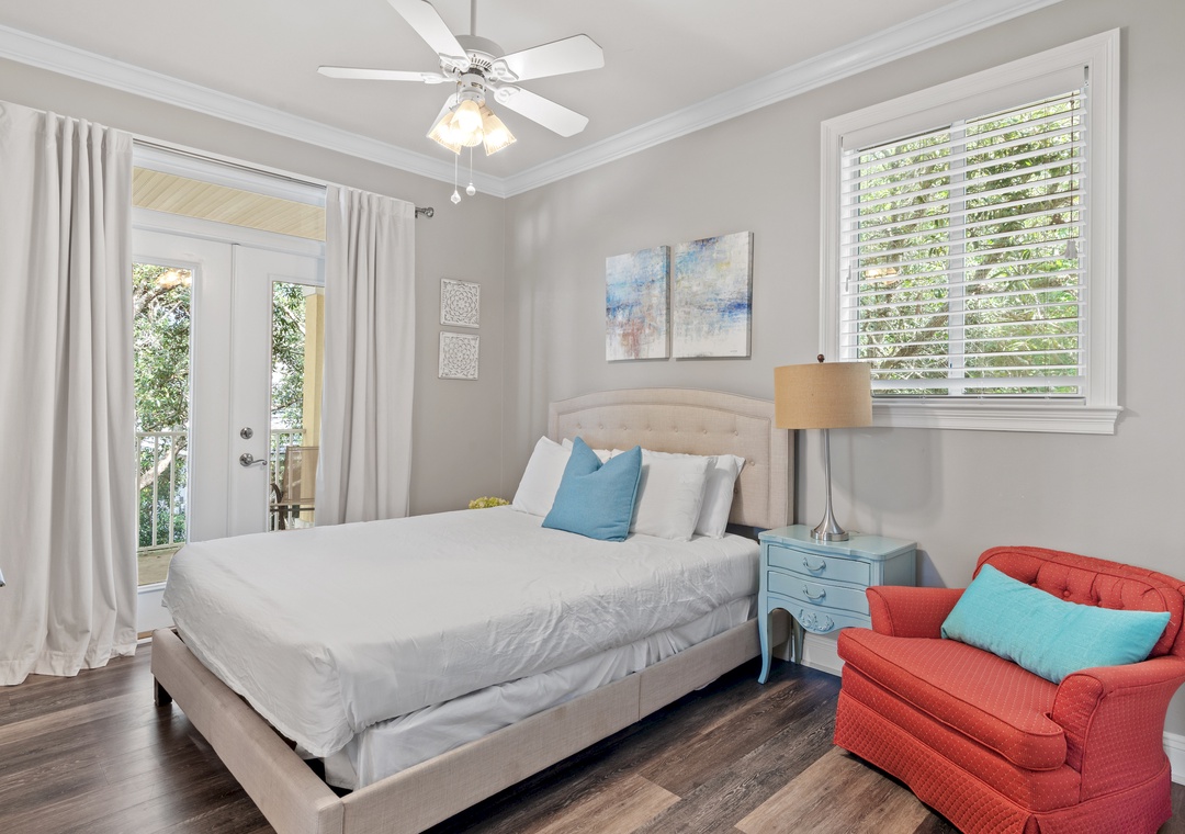Guest Bedroom 1: Queen Bed with Patio Access