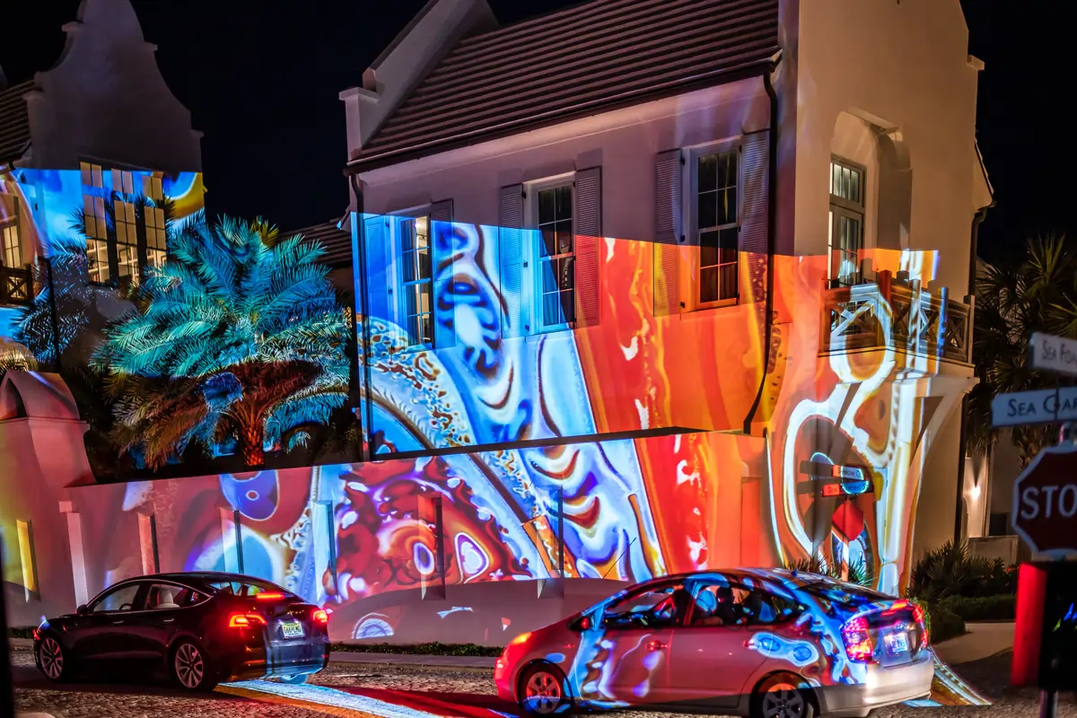 - Open-air digital art: Cutting-edge projections light up Alys Beach's iconic white walls.