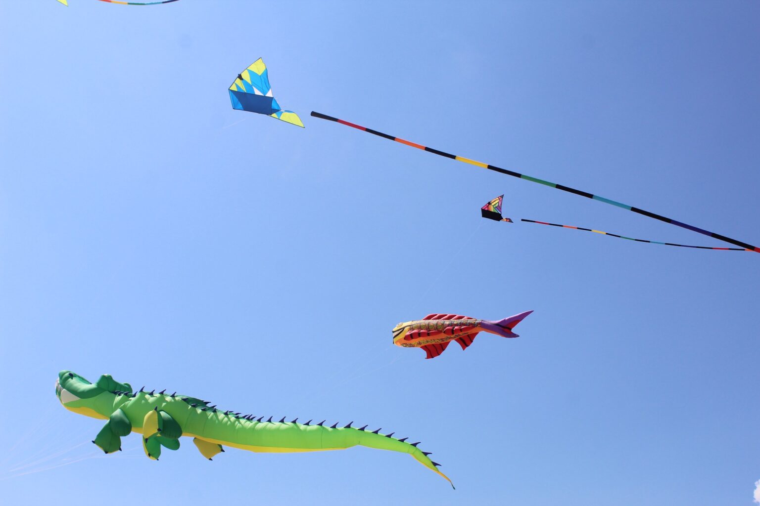 - Massive show kites: Think 100-foot octopus, 80-foot panda, 50-foot gator.