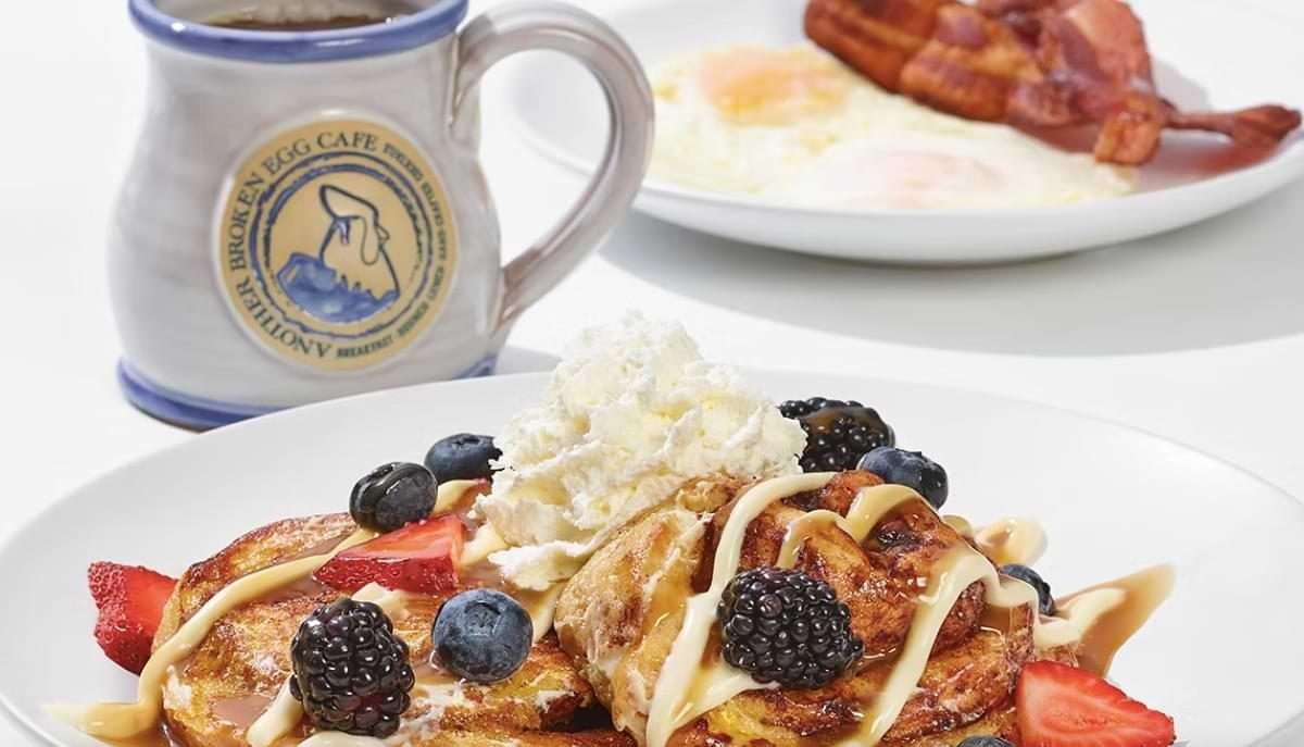 - Another Broken Egg Café: Classic Southern breakfast and brunch spot with crab cake Benedict, cinnamon roll French toast, and mimosas.
